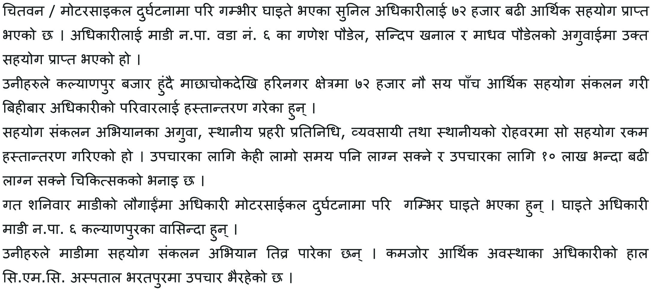 घाइते अधिकारीलाई ७२ हजार बढी आर्थिक सहयोग