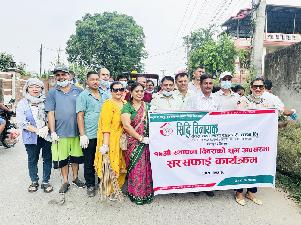चितवन । भरतपुर २, क्षेत्रपुरस्थित सिद्धि विनायक बचत तथा ऋण सहकारी संस्था लि. (साकोस) ले १७औं स्थापना दिवस मनाएको छ । सामाजिक उत्तरदायित्व वहन गर्ने उद्देश्यले मंगलबार सरसफाइ तथा बालिकाहरुलाई भोजन तथा फलफूल वितरण गरी मनाएको संस्थाका कार्यवाहक अध्यक्ष मुकुन्दप्रसाद गौतमले जानकारी दिए ।