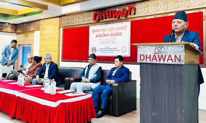 प्रदेश सूचना पुनरावेदन समितिका सदस्य कृष्णबहादुर सारुमगरले कार्यक्रमको उद्देश्यबारे प्रकाश पार्दै स्वागत मन्तव्य दिएका थिए । कार्यक्रम अध्यक्ष हरिप्रसाद अधिकारीको सभापतित्वमा सम्पन्न भएको थियो ।